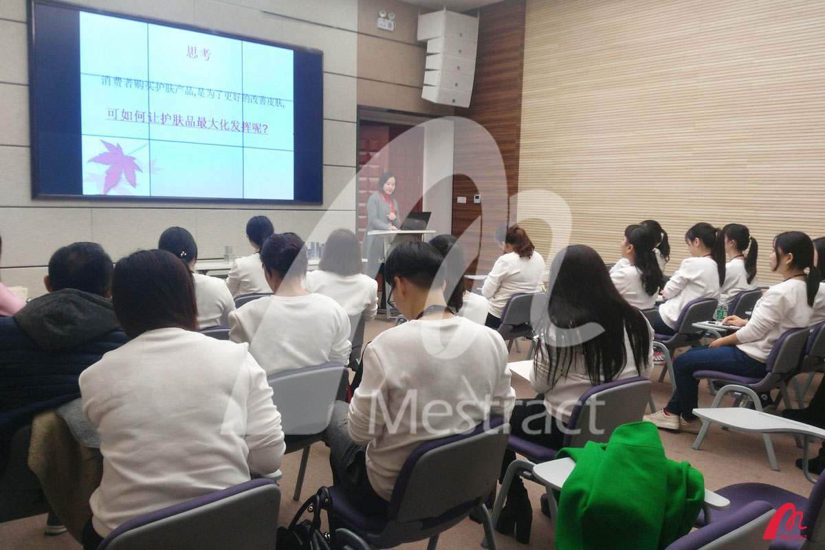 5日上午10点,客户团队到达公司。团队由品牌负责人、品牌市场工作人员、品牌代理商们组成。首先,客户随蜜妆工作人员参观了蜜妆工厂车间,了解了研发、生产、品质管理、产品评测等诸多设备仪器,也更深入的熟悉产品从研发到成品包装的制造过程。参观完毕后,客户进入培训室,听取化妆品专业知识及明星产品培训讲解,培训一直持续到下午4点结束。