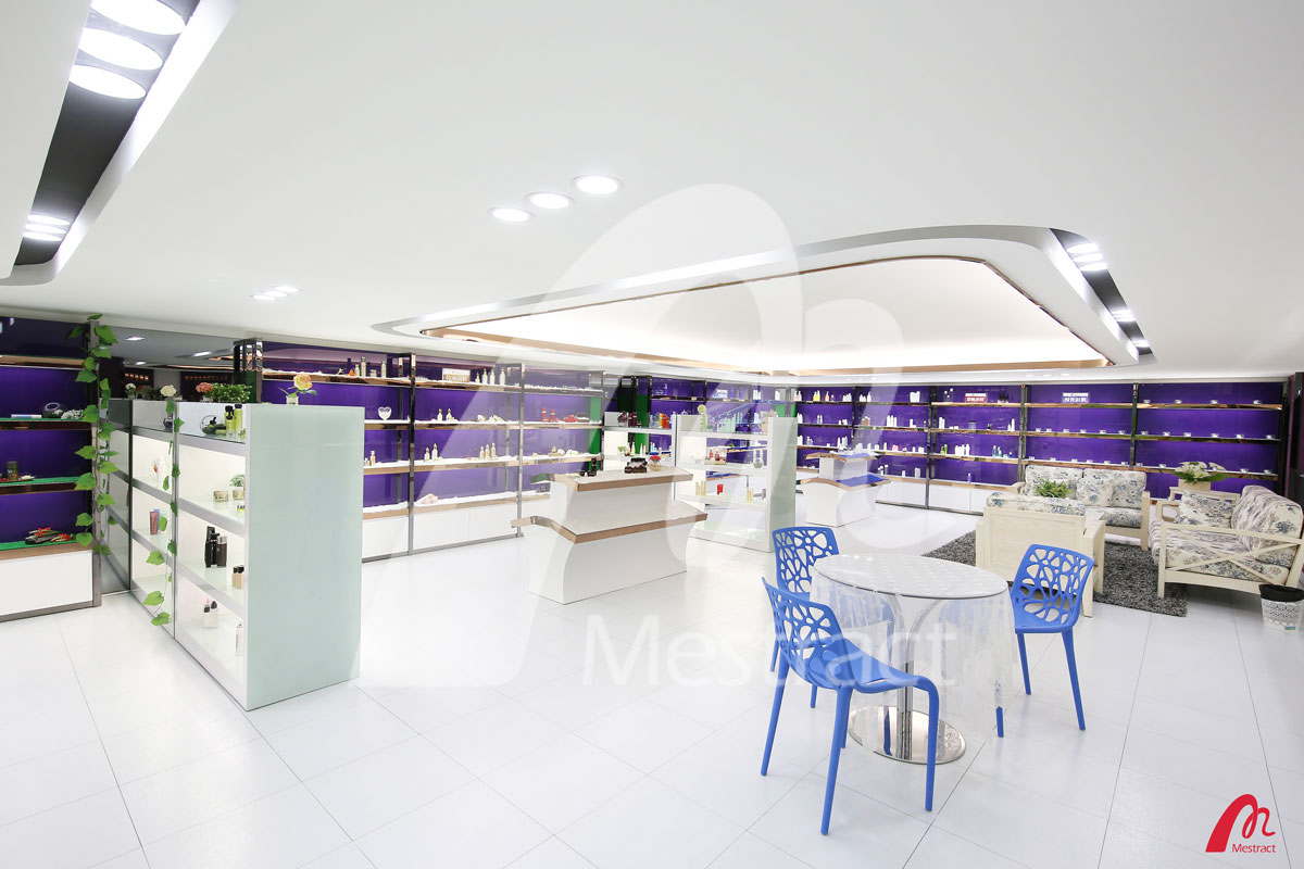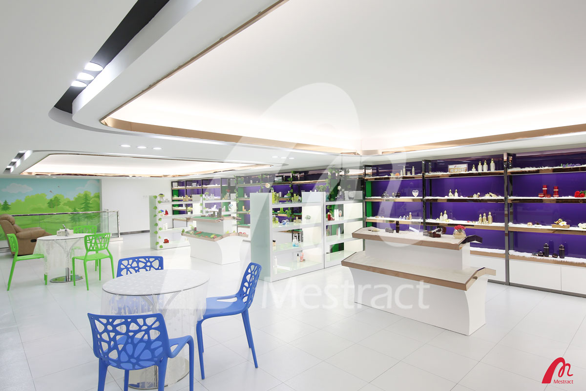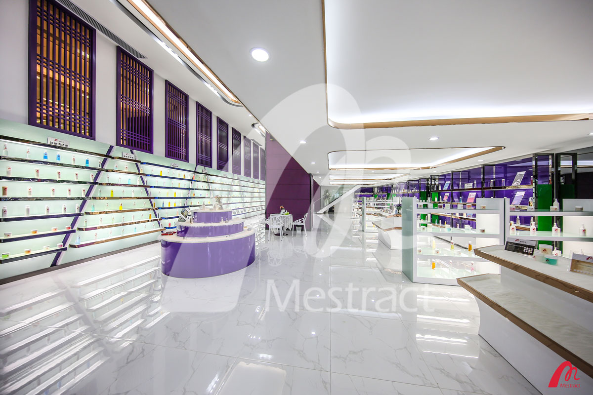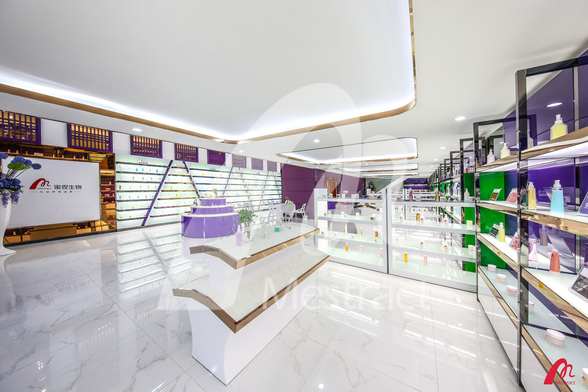 蜜妆样板间设计结合了蜜妆新厂现代、时尚的装饰风格,整体视觉明亮大气。样板间集合了蜜妆样品600多种,其中既有被客户推崇备至的明星单品,又有多种主题卖点的套装系列;既有面对专业院线的高端护理产品,又有面对个体消费者的优质产品。